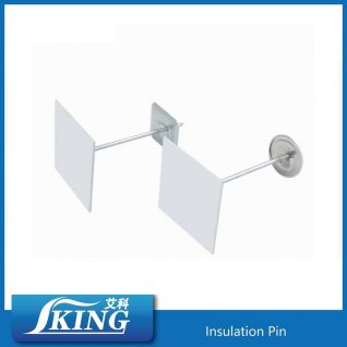 The cup head pin consist of a steel pin firmly mounted on a galvanised steel washer. And cup-head-pin with plastic sleeve are similar except that the shank is partially insulated. Thanks to this insulated shank and the use of the CHP gun, it is possible to fasten aluminium faced insulation.